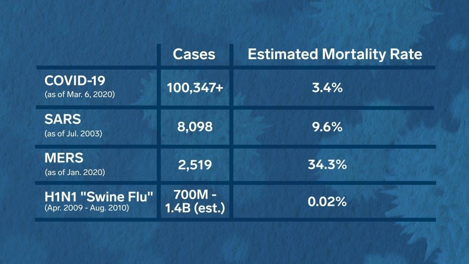 Virus Corona sudah menyebar hingga 10 kali lipat ketimbang kasus SARS karena penyebarannya yang sangat mudah sekali. Namun kenyataannya angka kematian dari Virus Corona tidak mencapai 5 persen. Pada tanggal 10 Maret 2020